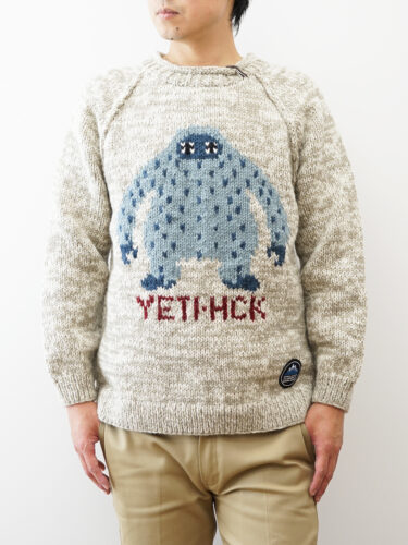さらに、このニットのデザインには、ヒマラヤで目撃されたと言われる伝説の雪男(YETI)がモチーフとして採用されています。ヒマラヤの壮大な自然の一部を感じられる、特別なアイテムです。