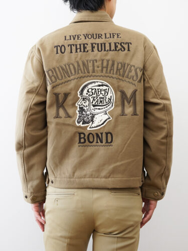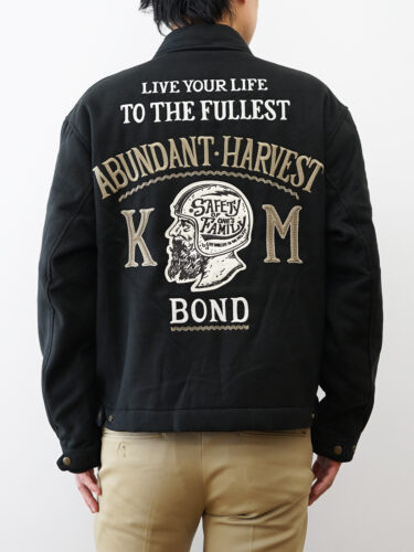 背面にはモーターサイクルカルチャーを感じさせるオリジナル刺繍を施し、存在感あるデザインに。